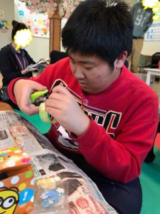 ノリで桜の花びらを貼っています(#^^#)