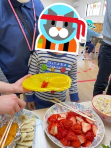 おやつの後にはお雛様とお内裏様の顔出しパネルで記念撮影をしました🎎📷