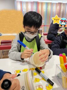 カップヌードルのロゴを好きな色で塗ったり、好きなキャラクターを描いたり🎶
