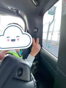 高速道路から見えるビルや川、町や山の景色にわくわく大興奮😆