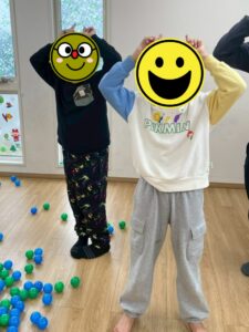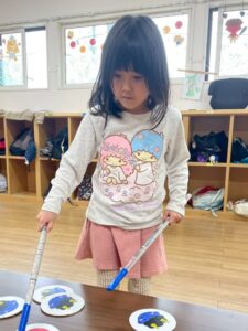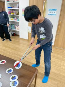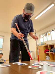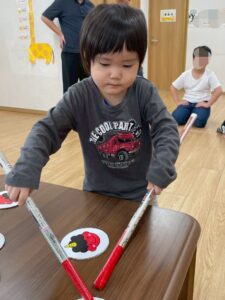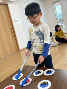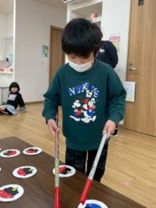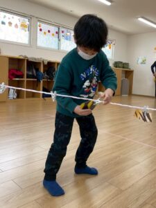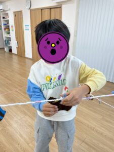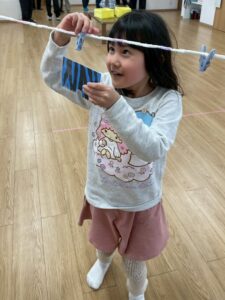 最後のゲームは、鬼のパンツ👹を干していきます(*^^*)